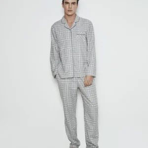 Pijama hombre abierto estampado cuadros franela 100% algodón Selmark