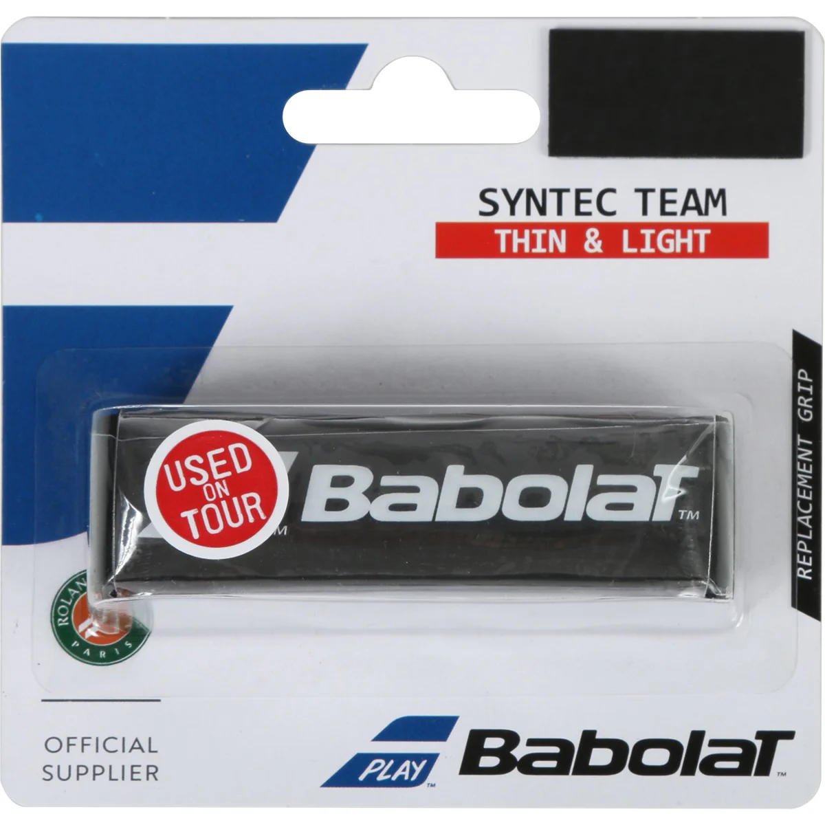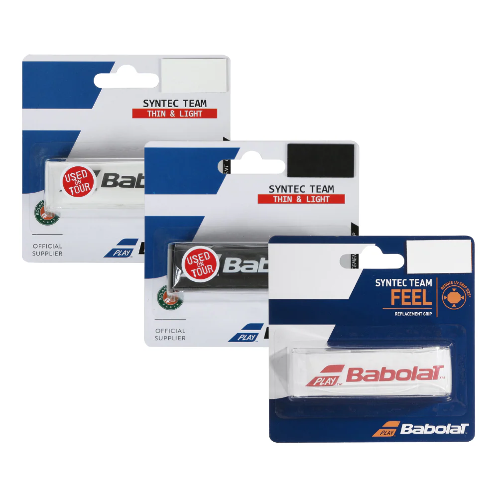 El grip Babolat Syntec Team es el grip Babolat más pequeño y ligero, lo que reduce el peso de la raqueta sin comprometer el tamaño del mango.