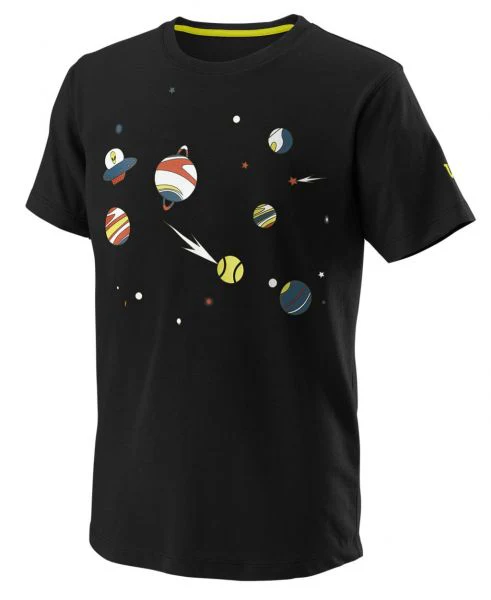 La camiseta de tenis Wilson Planetary Tech Junior es una prenda versátil adecuada tanto para la cancha de tenis como para la calle. Diseñada con cinta interior en el cuello, capacidad para absorber la humedad y gráficos divertidos en el frente.