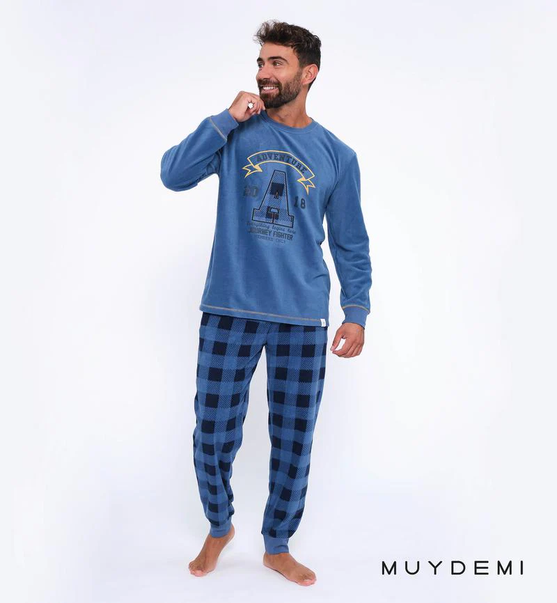 Para los más aventureros tenemos este pijama de hombre en color azul y de micropolar.