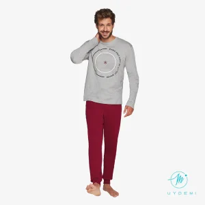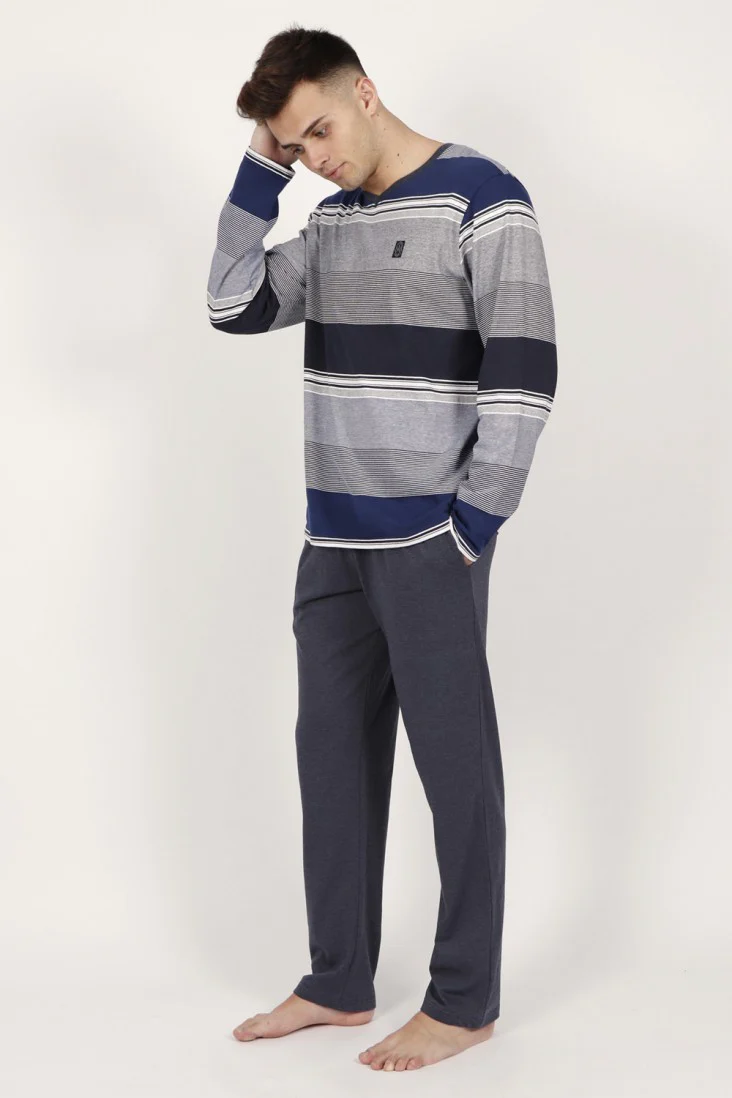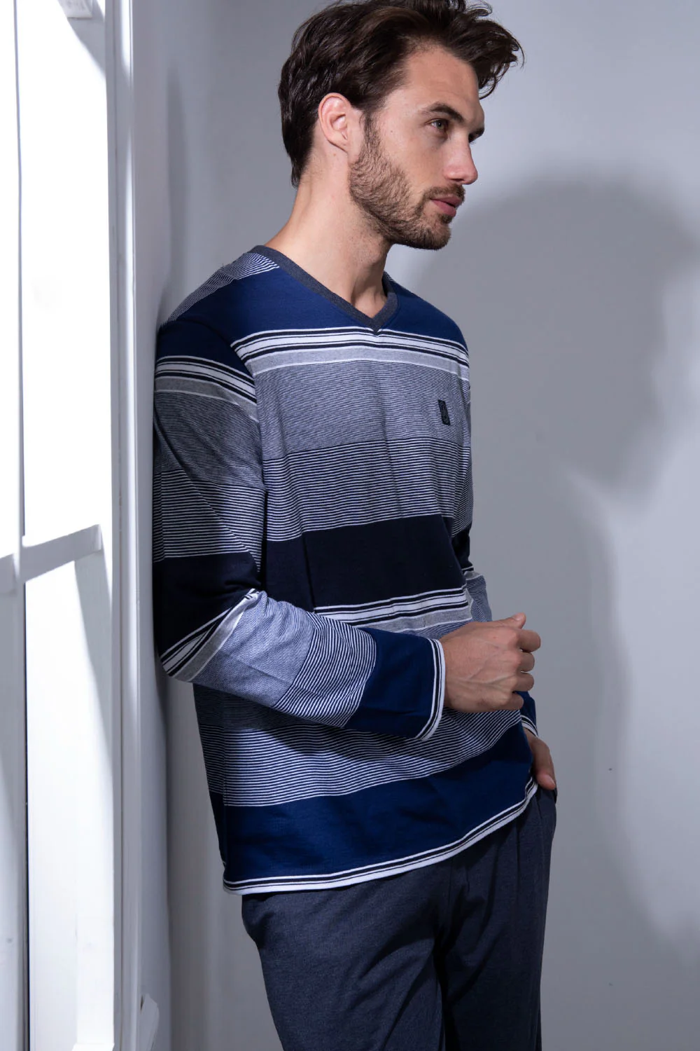 * Pijama de punto de algodón, de manga larga, cuello pico y pantalón largo
